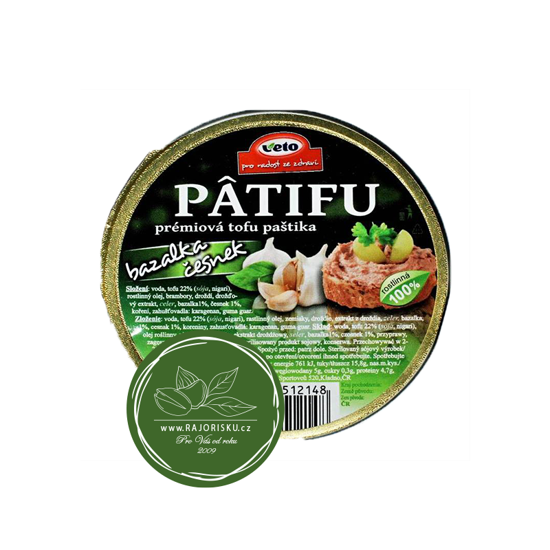 Patifu prémiová tofu paštika bazalka - česnek 100gskladem36,00 Kč/ ks32,14 Kč bez DPH